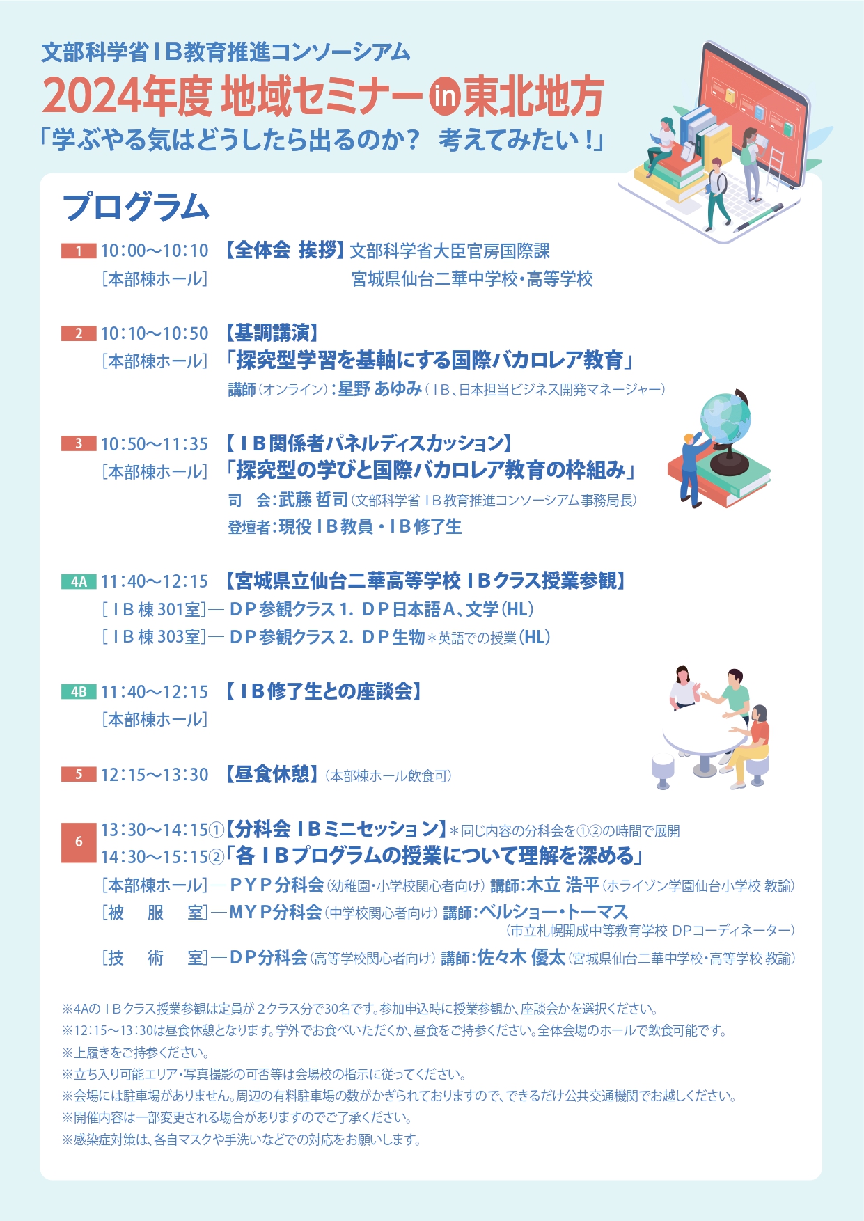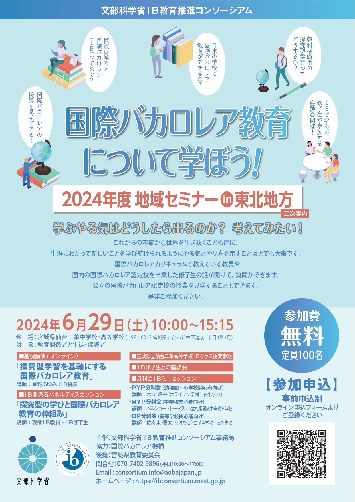 【2024年6月29日(土)】2024年度 国際バカロレア教育 地域セミナーin東北地方 2次案内(主催:文部科学省IB教育推進コンソーシアム事務局、後援:宮城県教育委員会)