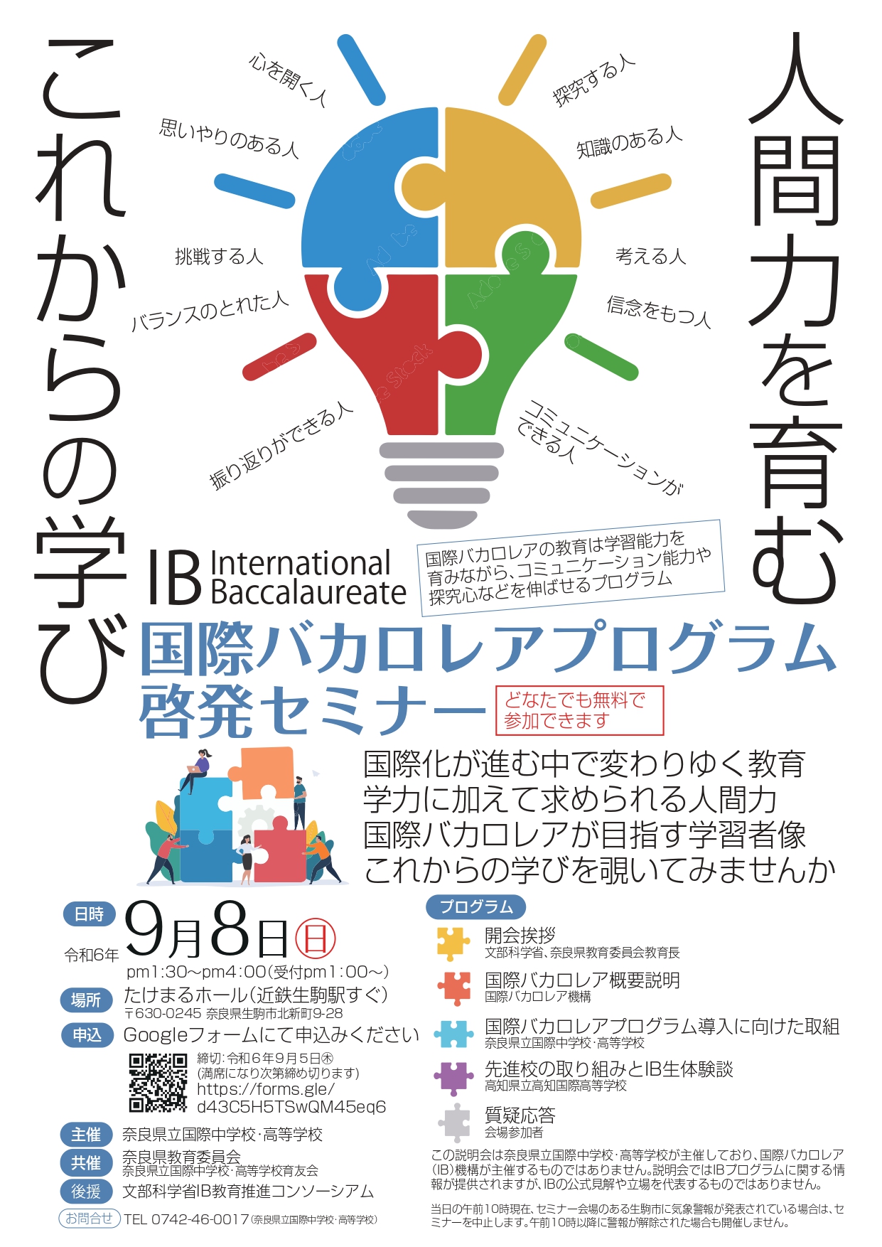 【2024年9月8日(日)】国際バカロレアプログラム啓発セミナー(主催:奈良県立国際中学校・高等学校)