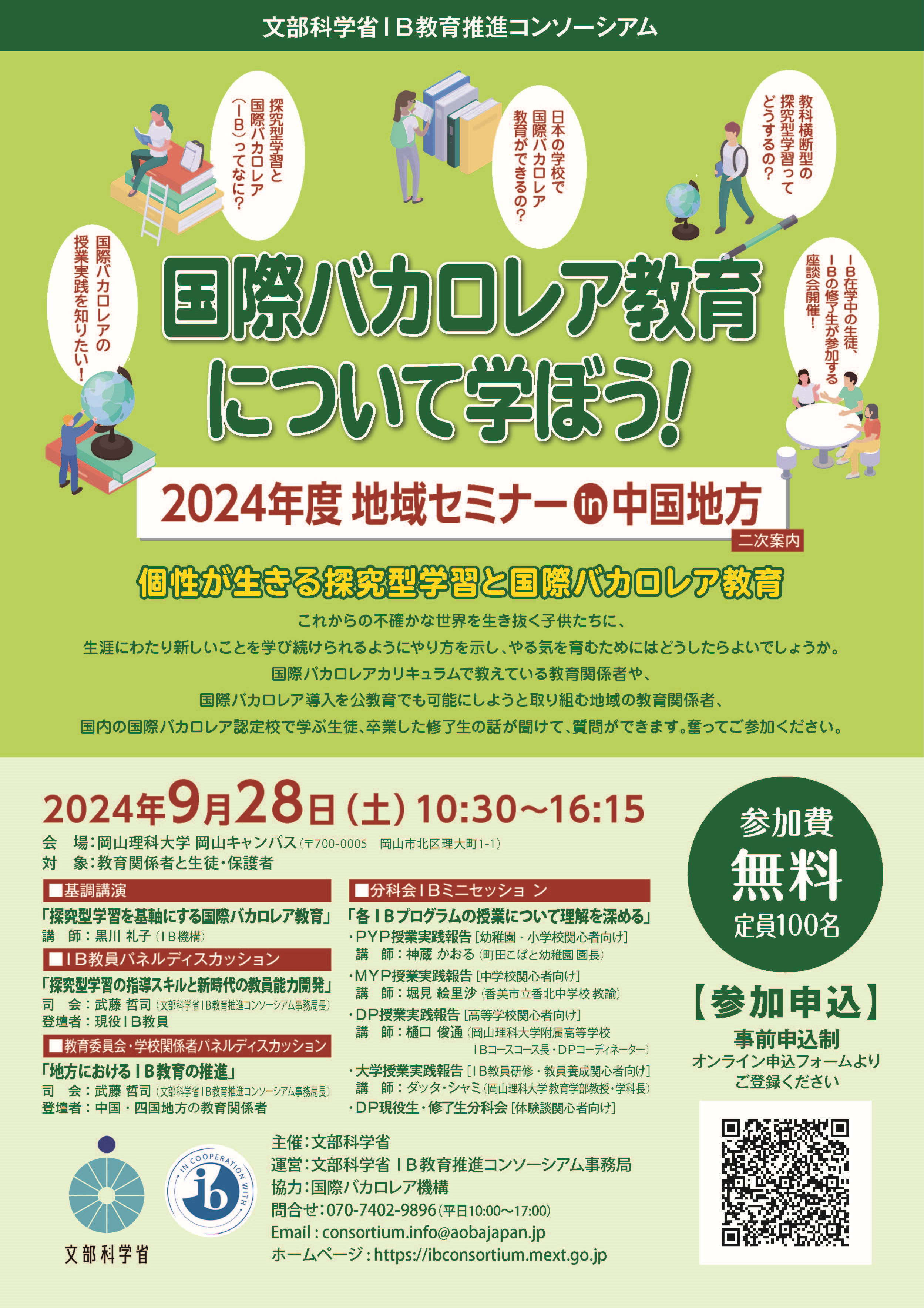 【2024年9月28日(土)】2024年度 国際バカロレア教育 地域セミナーin中国地方 2次案内(主催:文部科学省)