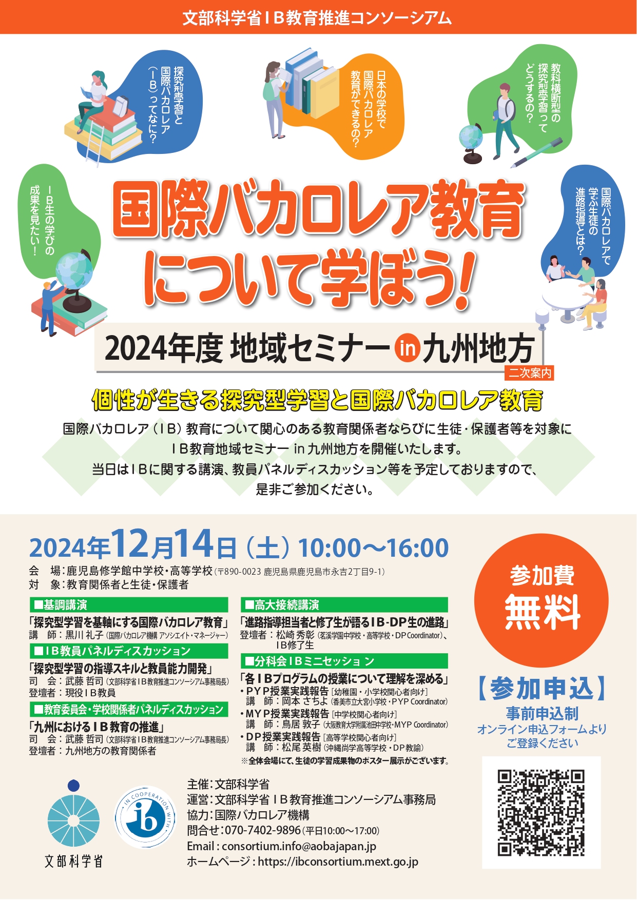 文部科学省IB教育推進コンソーシアム事務局は、国際バカロレア(IB)教育について関心のある教育関係者ならびに生徒・保護者等を対象に国際バカロレア教育地域セミナー in九州地方を開催いたします。