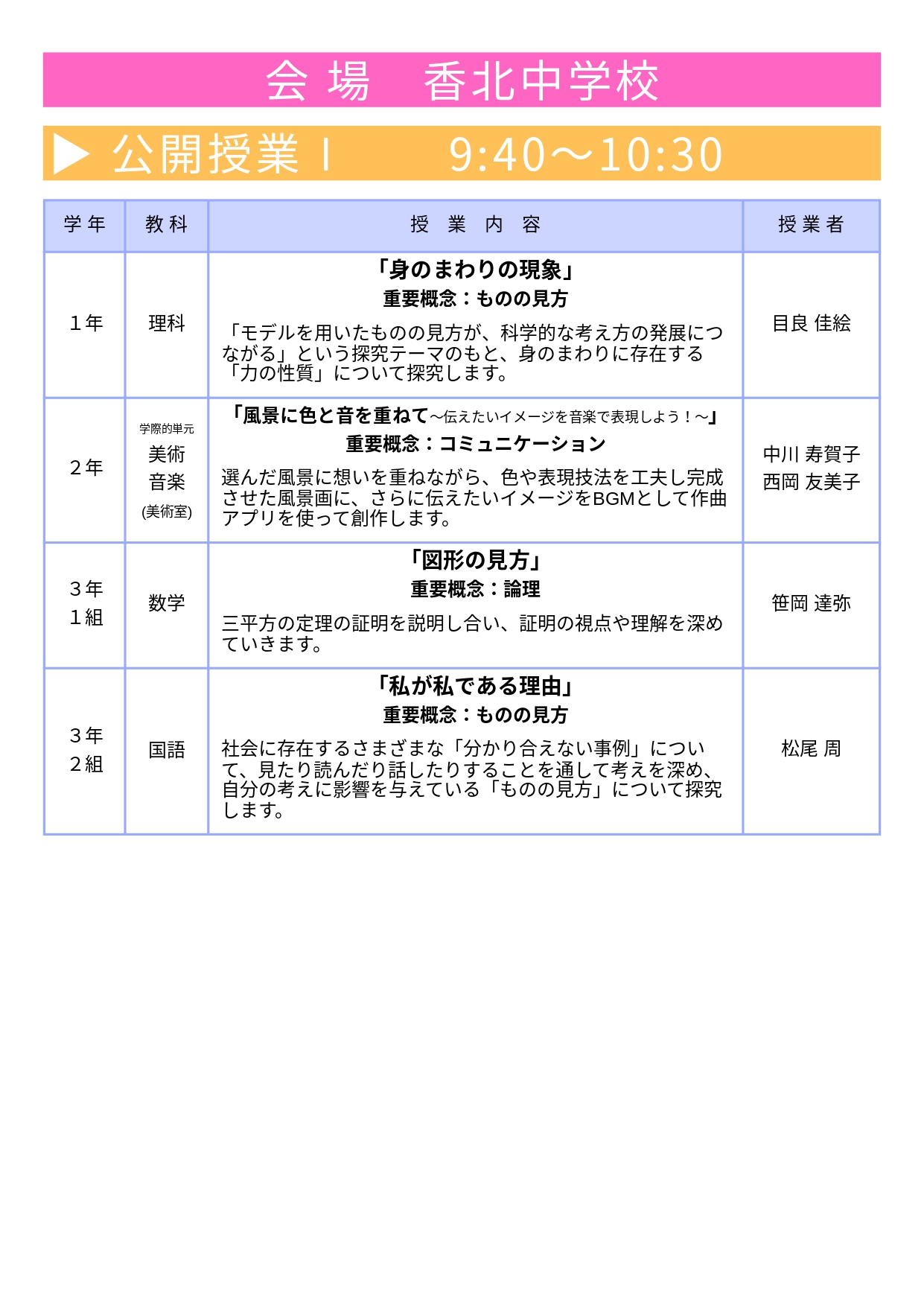 主 催 :高知県香美市立香北中学校