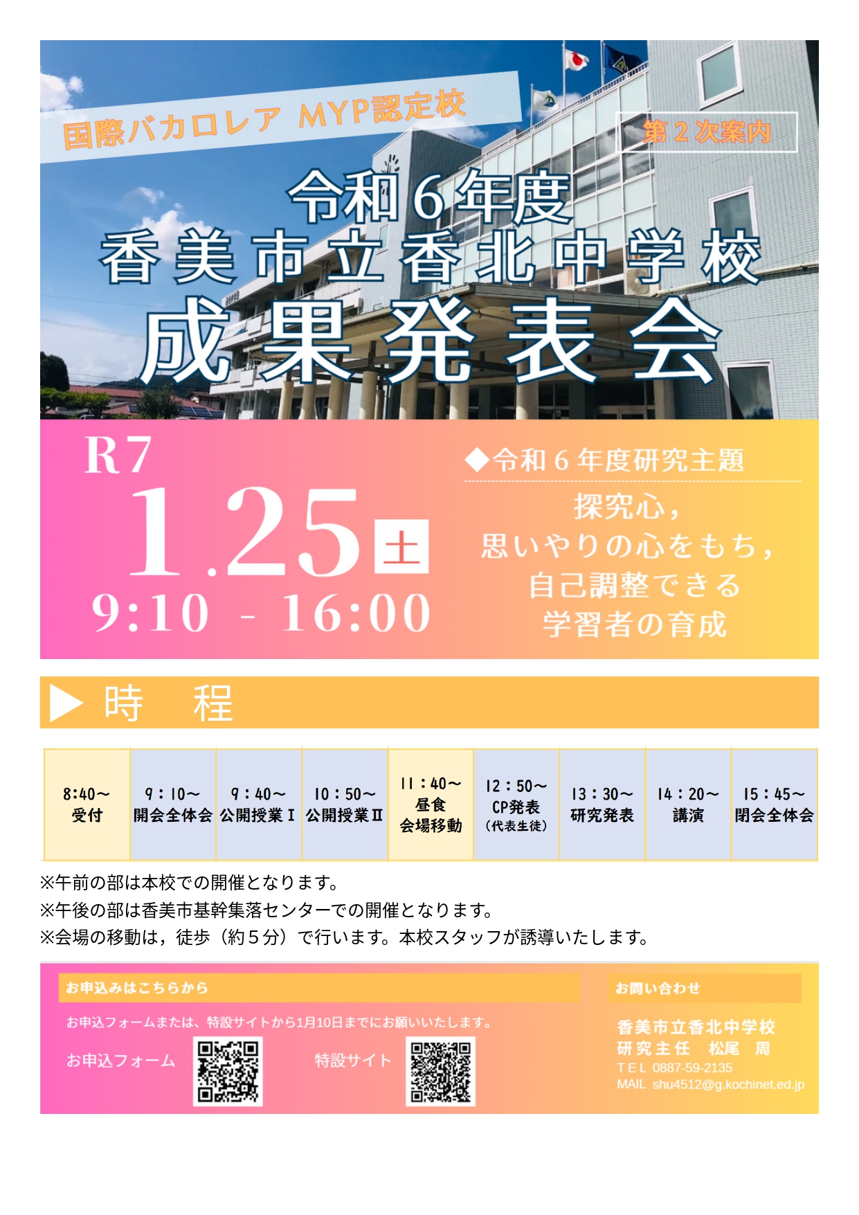 令和6年 高知県香美市立香北中学校 【成果発表会】開催のお知らせ