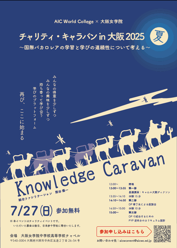 【2025年7月27(日)13:00- 】チャリティ・キャラバンin大阪2025 夏(主催:AIC World College/大阪女学院中学校高等学校)