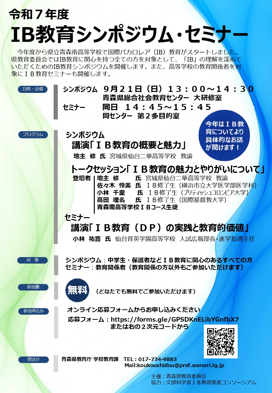 【2025年9月21日】令和7年度IB教育シンポジウム・セミナーの開催(主催:青森県教育委員会)