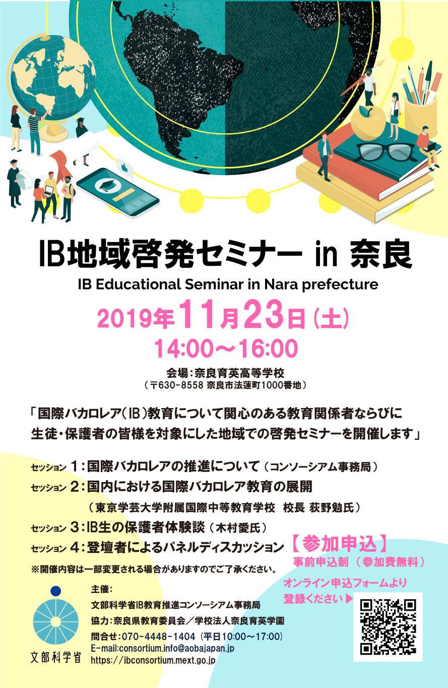 【2019年11月23日 (土)】IB地域啓発セミナーin奈良(主催:文部科学省IB教育推進コンソーシアム事務局)