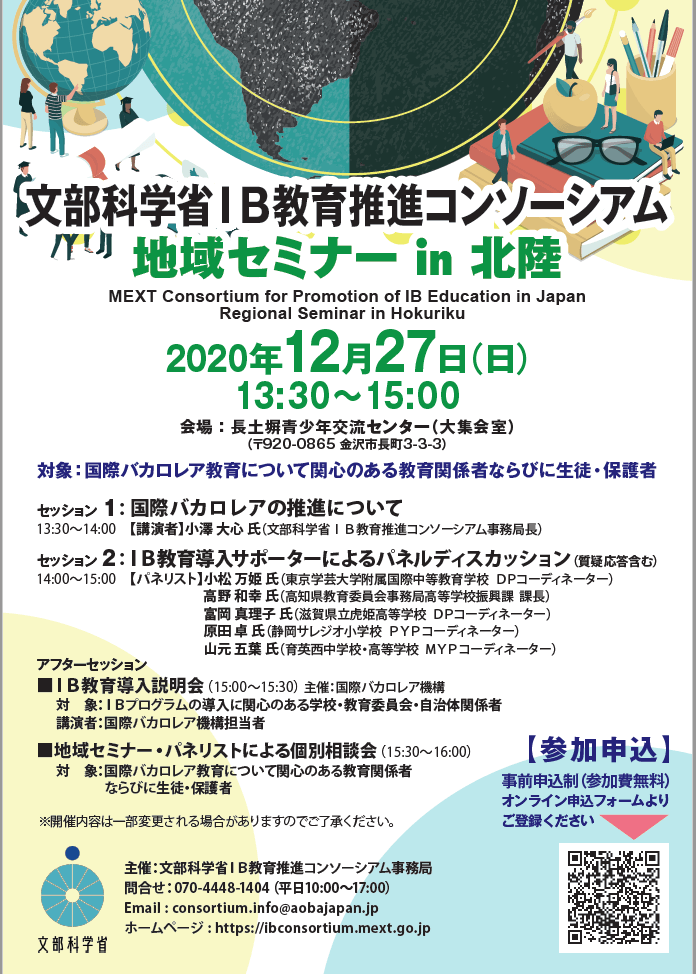 オンライン開催【2020年12月27日(日)】文部科学省IB教育推進コンソーシアム地域セミナーin 北陸(主催:文部科学省IB教育推進コンソーシアム事務局)