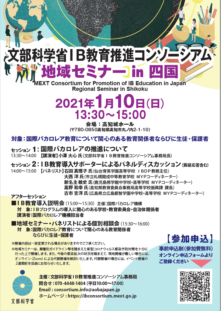 オンライン開催【2021年1月10日(日)】文部科学省IB教育推進コンソーシアム地域セミナーin 四国(主催:文部科学省IB教育推進コンソーシアム事務局)