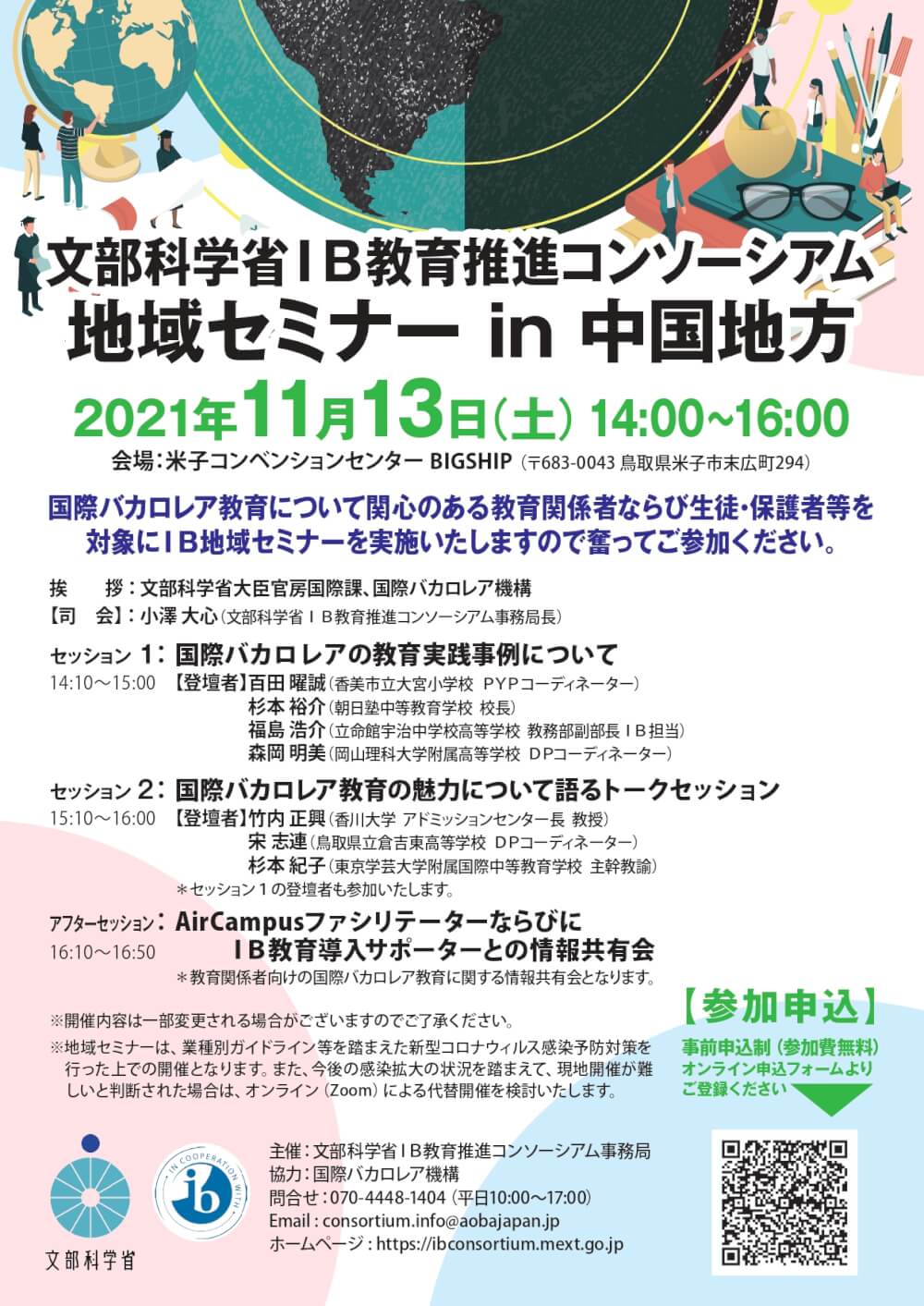 【2021年11月13日(土)】開催 「文部科学省IB教育推進コンソーシアム地域セミナー in 中国地方」のお申し込みはこちら