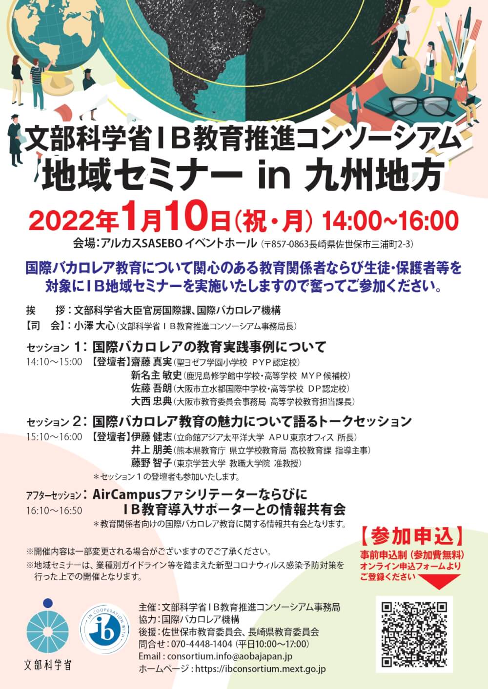 現地開催【2022年1月10日(祝・月)】文部科学省IB教育推進コンソーシアム地域セミナー in 九州地方