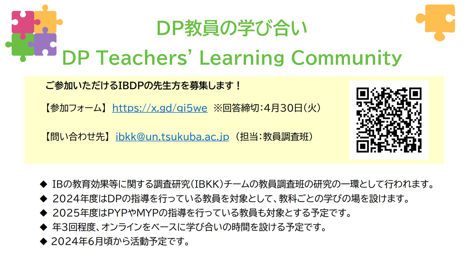 文部科学省IB教育推進コンソーシアム IBの教育効果等に関する調査研究より、以下の募集案内がありましたのでお知らせします。